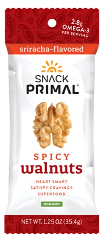 Nueces con sabor a sriracha Nueces cultivadas en California, sin OMG Superalimento, corazón y cerebro inteligente, antojos satisfactorios Sabor loco, beneficios serios! Una versión picante de estar saludable 12 paquetes de 1.25 onzas rellenas con 0.08 onzas de Omega-3 por porción