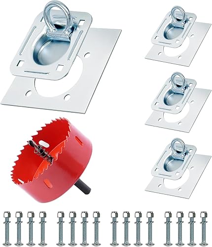 Kit de anclaje de amarre de anillo en D empotrado, paquete de 4 anclajes de amarre de anillo en D para remolque, resistente, por hasta 6,000 libras,