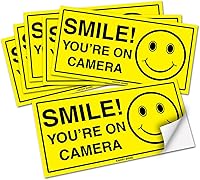 (Conjunto de 6) cartel de vinilo autoadhesivos "Smile You're On Camera", de 2 pulgadas x 4 pulgadas, LAMINADOS para una máxima protección y