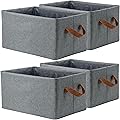 4 cubos de almacenamiento de tela, cestas de organización para estantes, organizador de armario de lino de 15 pulgadas con asas, marco de metal,