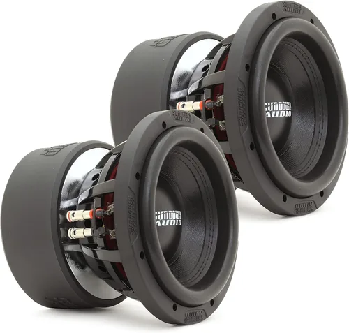 800W RMS por subwoofer Cables de plomo de oropel de alta potencia cosidos Aluminio negro 2.5 "bobina de voz anterior para una disipación de calor superior Pieza de poste sólido con bordes biselados y canales de aire mecanizados para una mayor refrigeración de la bobina de voz Marco de aluminio fundido patentado y de alta resistencia
