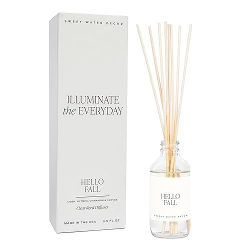 Our Hello Fall Amber Reed Diffuser smells delicious, with scent notes of hot cider, cinnamon, cloves, apple and nutmeg. It's perfect for Fall, Holiday, Thanksgiving, Halloween, Hostess Gifts, Housewarming, and more!