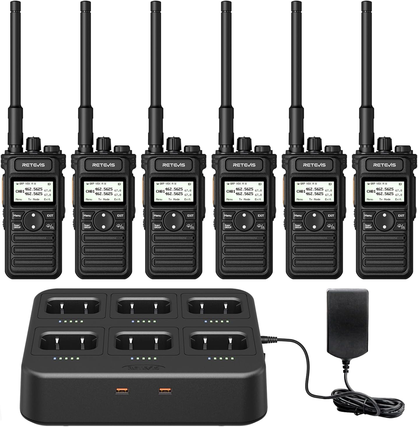 (2ª generación RT86) Retevis RT86S Walkie Talkie de largo alcance, radio profesional de 2 vías con cargador de 6 vías, llamada grupal, recargable de