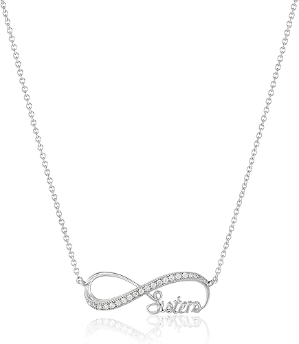 - Collar de plata de ley con infinity-shaped Sisters colgante con con circonita cúbica rondas Cadena de cable con cierre de anillo. Importados