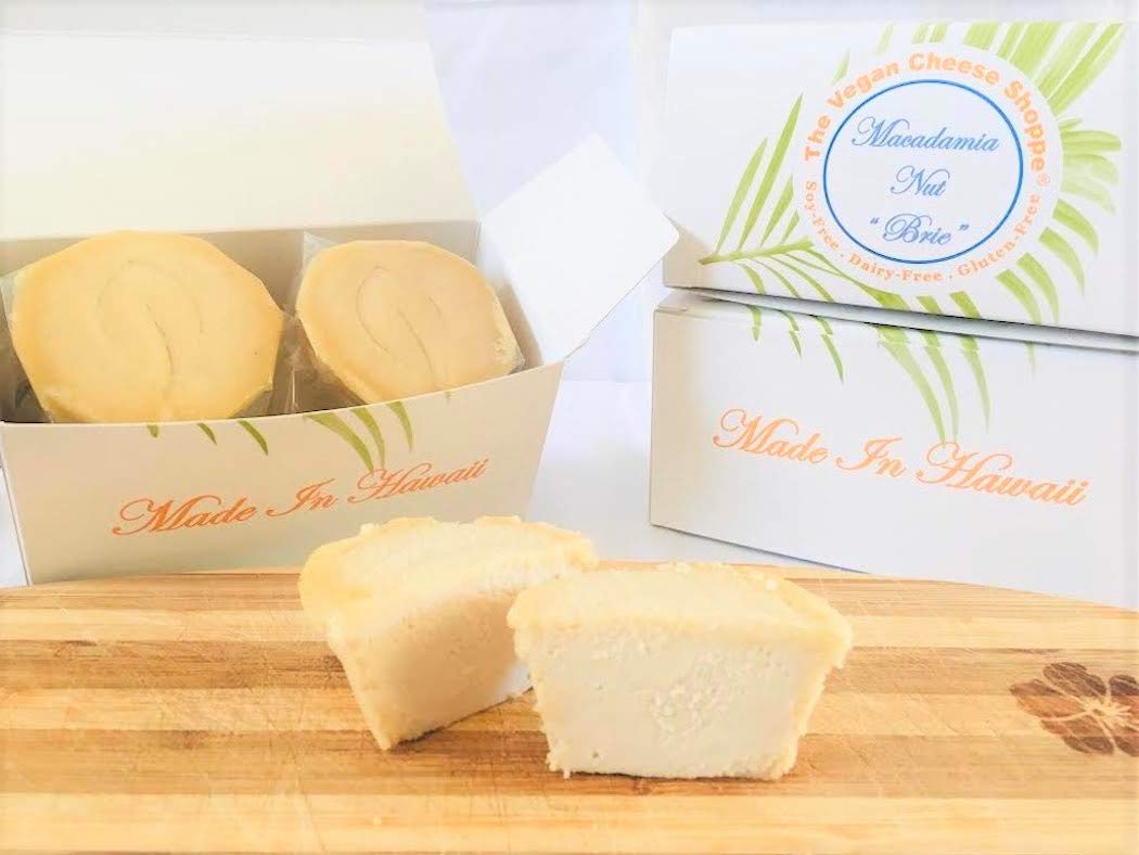 Nuez de macadamia vegana "Brie" hecha en Hawaii. Sin lácteos, sin soja y sin gluten. Una alternativa a base de plantas, cremosa y untable sin