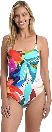 La Blanca Traje de baño de una pieza para mujer con hombros descubiertos y volantes Island Goddess