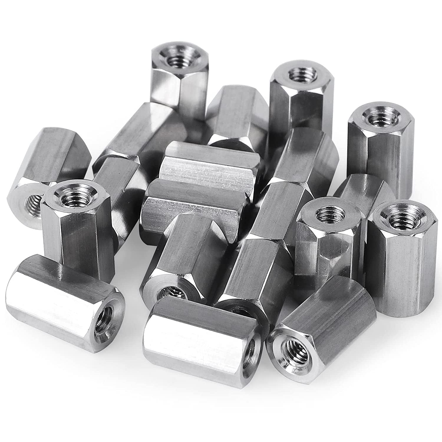 Tuerca de acoplamiento hexagonal 10 tuercas de acoplamiento hexagonales métricas M6 de acero al carbono M6 x 18