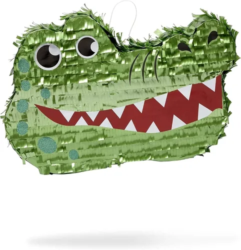 Suministros para fiestas temáticas de safari con piñata de cocodrilo (16.5 x 11.5 3 pulgadas) Libro verde 1 X. Suministros para fiestas de selva: Impresiona a tus invitados con un divertido tema y un juego de fiesta, esta piata de cocodrilo es ideal para una próxima fiesta de cumpleaños de safari en la selva. Fácil de llenar: rellena fácilmente con rellenos de piñata como dulces, chocolates, mini juguetes o confeti; sorprende a tus invitados con una actividad divertida y golosinas (rellenos no incluidos). Información de material confiable: La piñata verde está hecha de papel corrugado en el interior y papel tisú en el exterior Piata de cocodrilo pequeña para fiesta de cumpleaños de safari infantil (16.5 x 11.5 x 3 pulgadas). Tamaño del producto: la piata mide aproximadamente 16.5 x 11.5 x 3 pulgadas. Tamaño del producto: 12.0 pulgadas. Largo x 8.0 pulgadas. Ancho x 6.0 pulgadas. H. Material: papel. Tipo de acento: Figurilla.