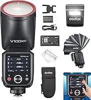 Godox Flash V100-F para cámara Fuji,Cámara de cabeza redonda Flash Speedlite,TTL Pantalla táctil 2.4G Sistema inalámbrico X para Fuji (actualización