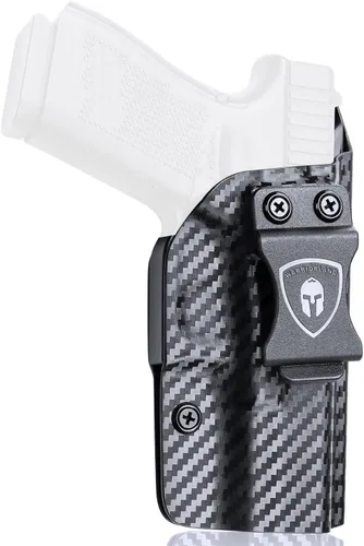 Compatibilidad: compatible con Glock17/19/19X/26/44/45 Gen (1-5) y Glock 23/32 Gen (3-4). Incompatible con Glock 23 Gen 5 y Glock 32 Gen 5 ni ningún punto rojo, óptica, láser/luz Fabricado en Kydex de fibra de carbono estadounidense de 0.08 pulgadas: la funda Glock 19 IWB está hecha de material Kydex de fibra de carbono de 0.08 pulgadas (0.079 in), que posee caracteres resistentes, duraderos, impermeables, lavables y ligeros. Muy adecuada para transporte oculto diario COMPENSADOR Y CORTE ABIERTO - La funda G19 puede adaptarse a varios compensadores - Bozal abierto sobrecortado con barril roscado Protector contra el sudor de longitud completa y sistema audible de POSI-CLIC: el protector de sudor de longitud completa puede evitar el sudor hacia tu pistola. Puedes escuchar un sonido claro de "clic" cuando el arma de fuego está firmemente asentada Borde pulido a mano y estracción interior suave: todos los bordes de las fundas WARRIORLAND están pulidos a mano. Estructura interior lisa que garantiza que no se raye ni se desgaste Inclinación y retención ajustables: ángulo de transporte ajustable de -5 a +20 grados, retención ajustable para una tensión adecuada Garantía de por vida: todas las fundas WARRIORLAND poseen garantía de por vida, si por alguna razón no estás satisfecho, no dudes en ponerte en contacto con nuestro servicio de atención al cliente 24/7, respaldamos la calidad de nuestro trabajo