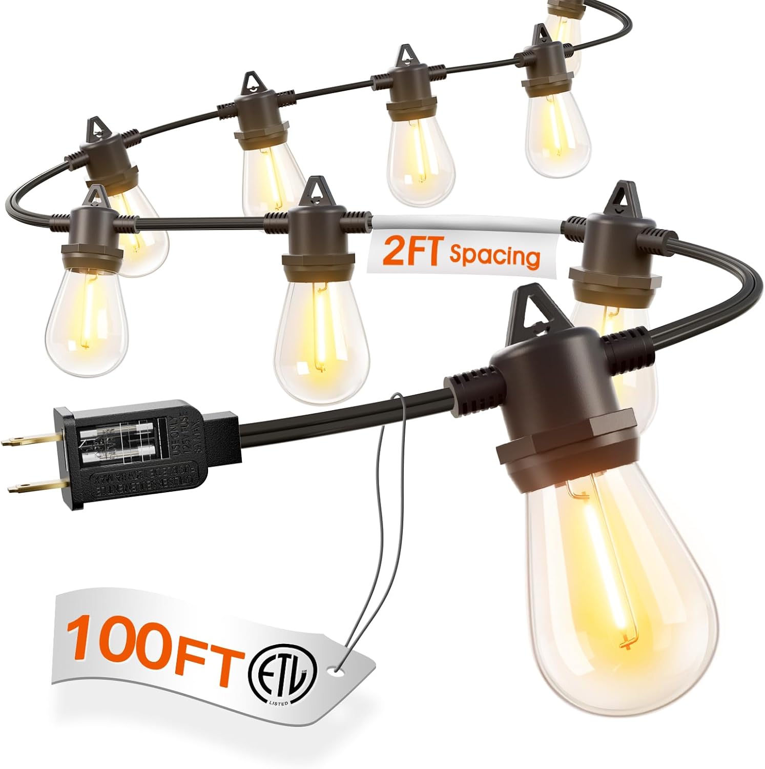 Svater Guirnalda de luces para exteriores de 200 pies, luces de patio para exteriores con bombillas LED inastillables, impermeable, IP65, luz