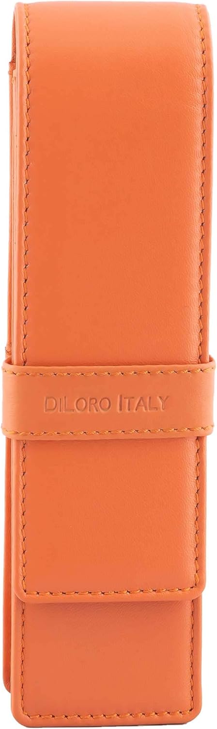 DiLoro Estuche doble de cuero para lápices para dos bolígrafos y lápices estilográficos (naranja)