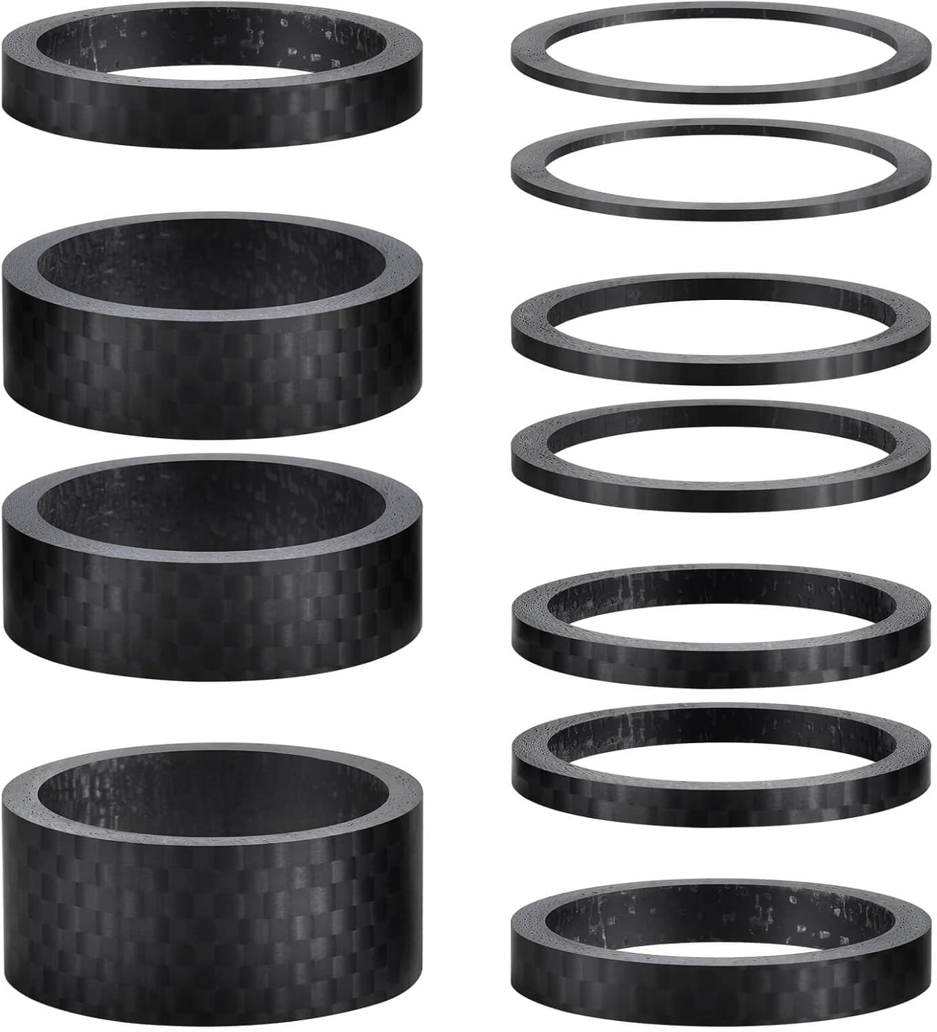 11 espaciadores de auriculares de fibra de carbono para bicicleta, acabado mate, se adapta a vástago de 1-18 pulgadas para MTB, vástagos de manillar