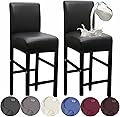 FORCHEER - Juego de 2 fundas para taburete de bar con respaldos, aspecto de cuero, para taburetes de bar de respaldo corto, extraíbles y lavables (2
