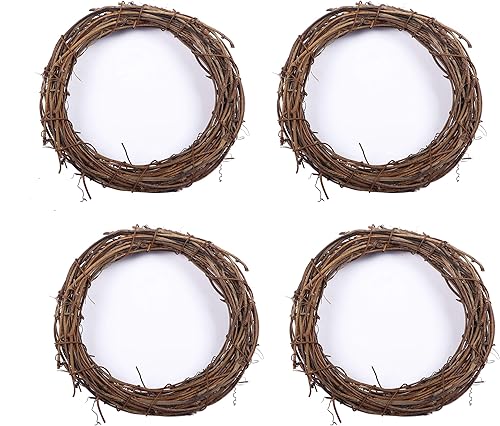 Corona de vid de madera Talla: 8" Color: Marrón El paquete incluye: 4 piezas Perfecto para flores secas y artificiales, vegetación de temporada, adornos, decoración del hogar, marcos de fotos y mucho más. Disponible en una variedad de tamaños y formas, puedes tener uno para cada temporada durante todo el año.